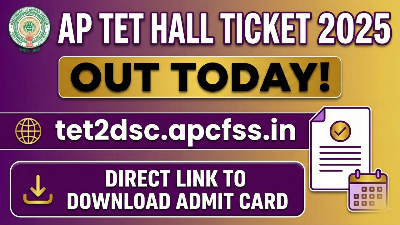 The Department of School Education, Government of Andhra Pradesh, has officially released the AP TET Hall Ticket 2025 today, 03rd December 2025. Candidates who have successfully completed their registration can now download their admit cards from the official portal tet2dsc.apcfss.in. To access the hall ticket, candidates must log in using their application number and password/date of birth.